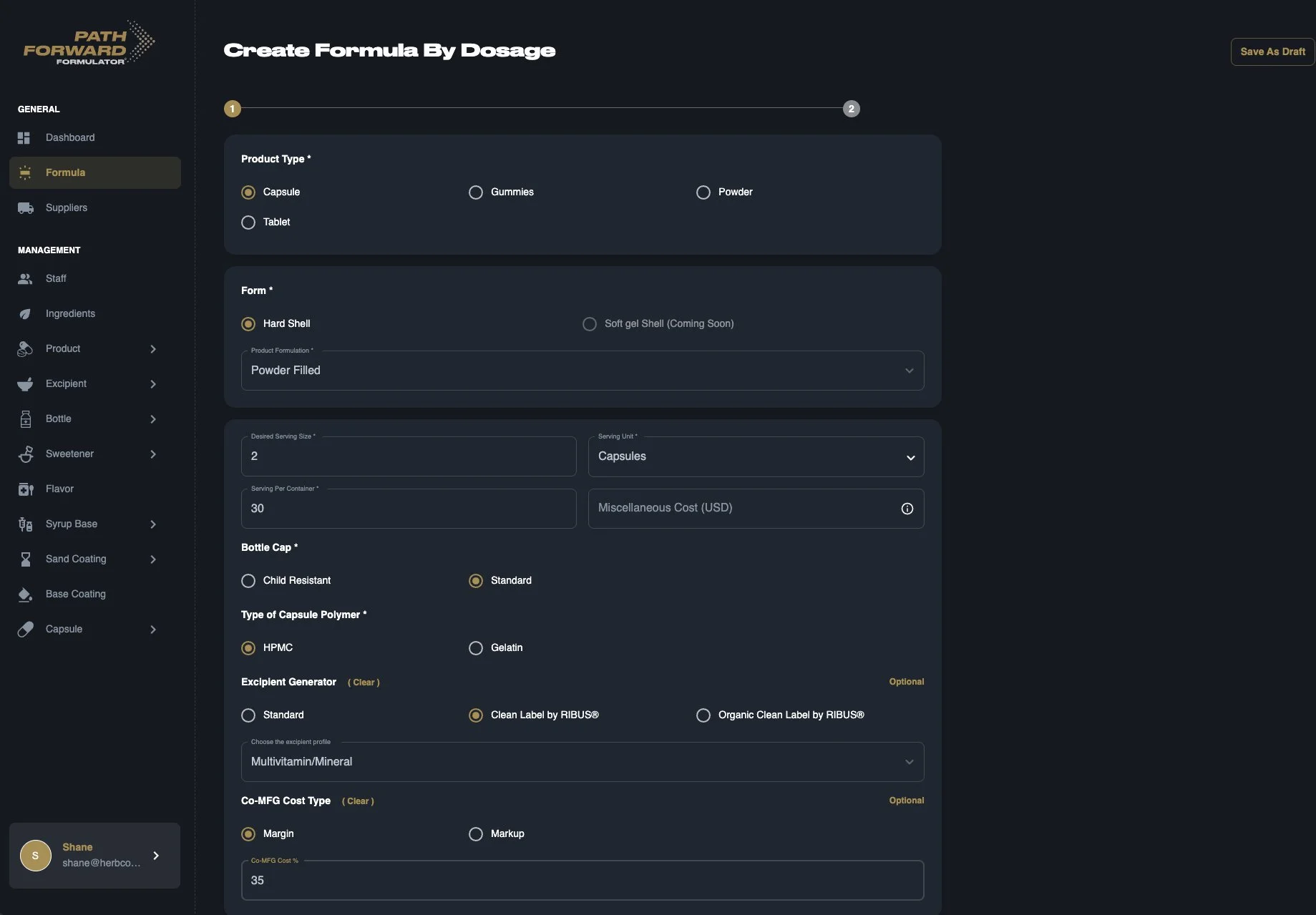 Create, adjust, and optimize supplement formulas instantly using a structured formulation engine designed for real-world product development.
